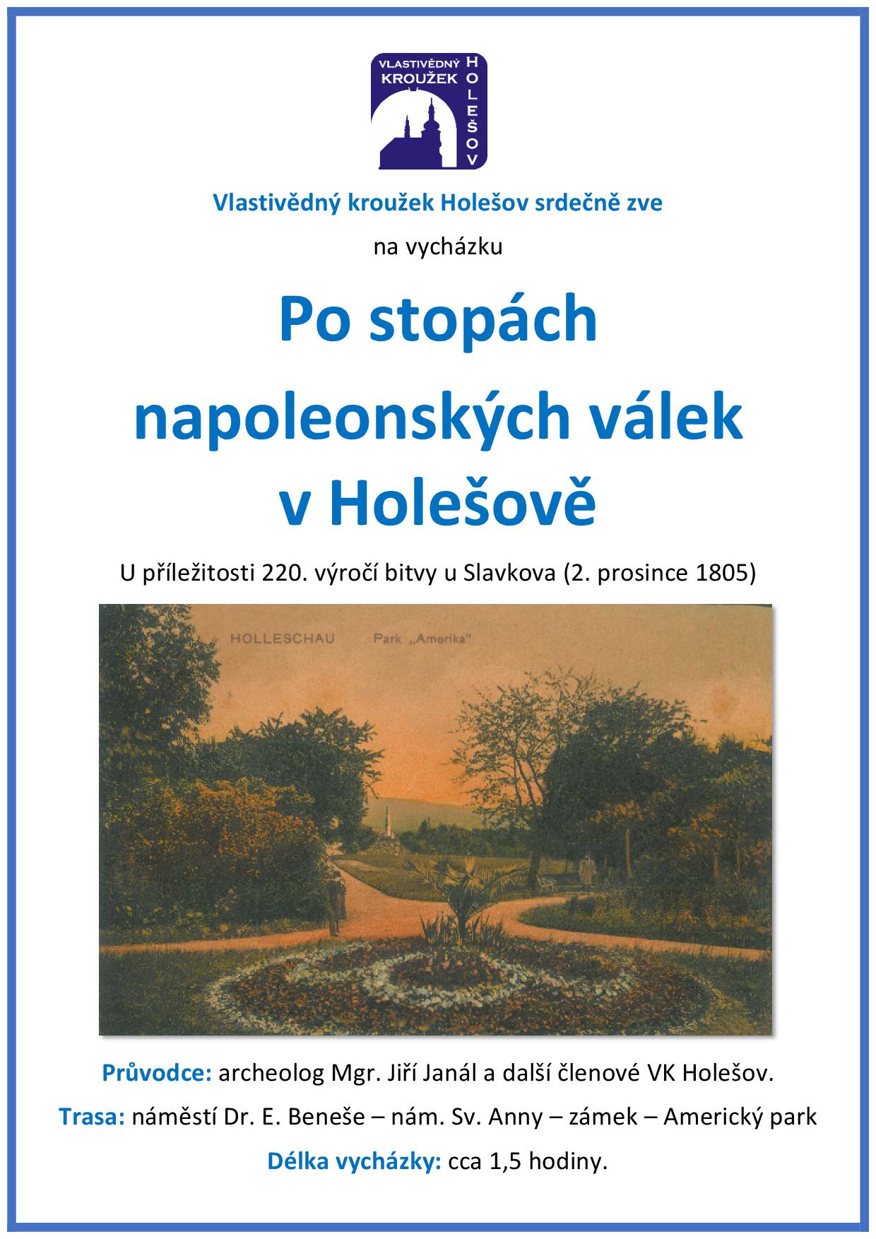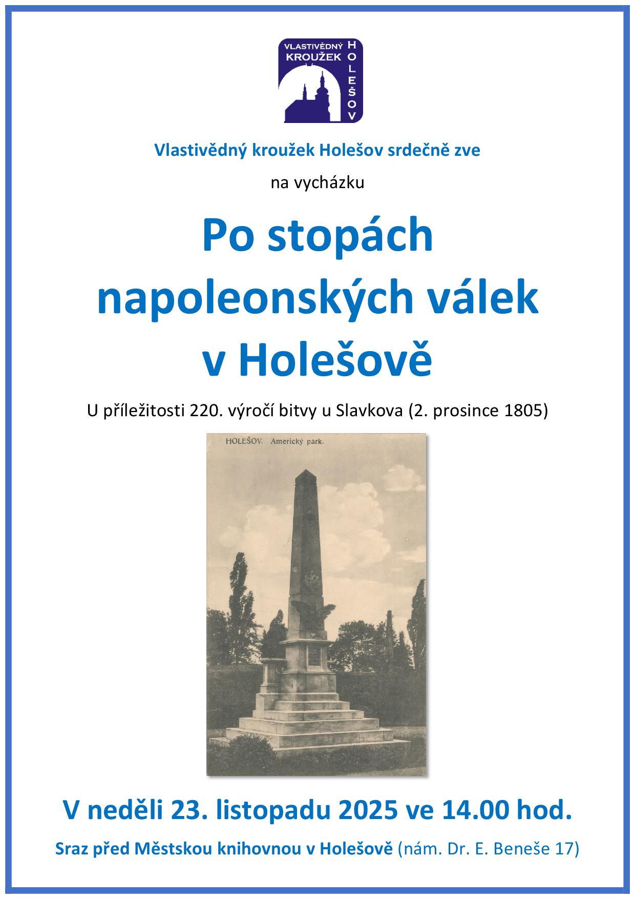 Vlastivědný kroužek Holešov zve veřejnost na tematickou vycházku Po stopách napoleonských válek v Holešově, která se koná