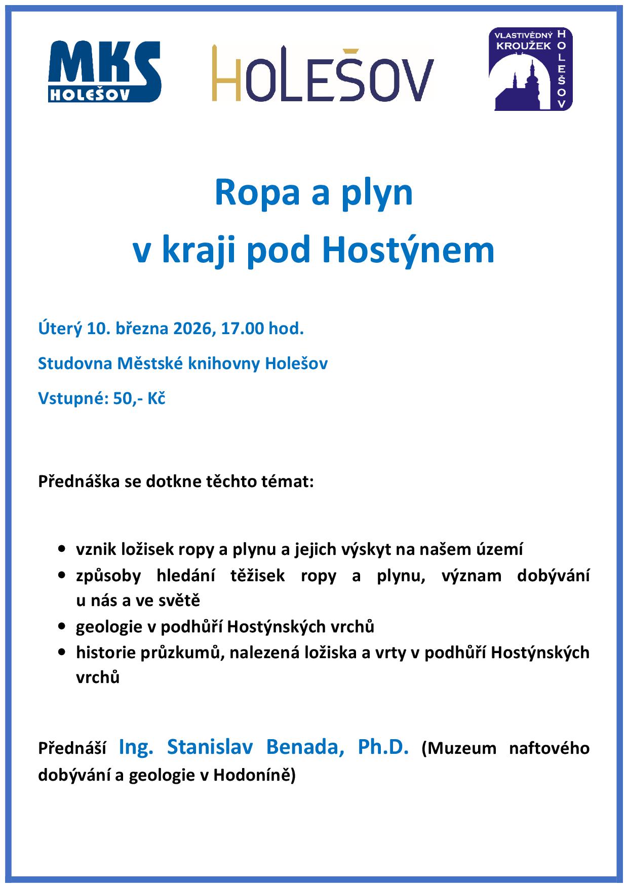 Městská knihovna Holešov a Vlastivědný kroužek Holešov vás srdečně zvou na přednášku věnovanou historii i současnosti těžby ropy a zemního plynu v regionu pod Hostýnem.